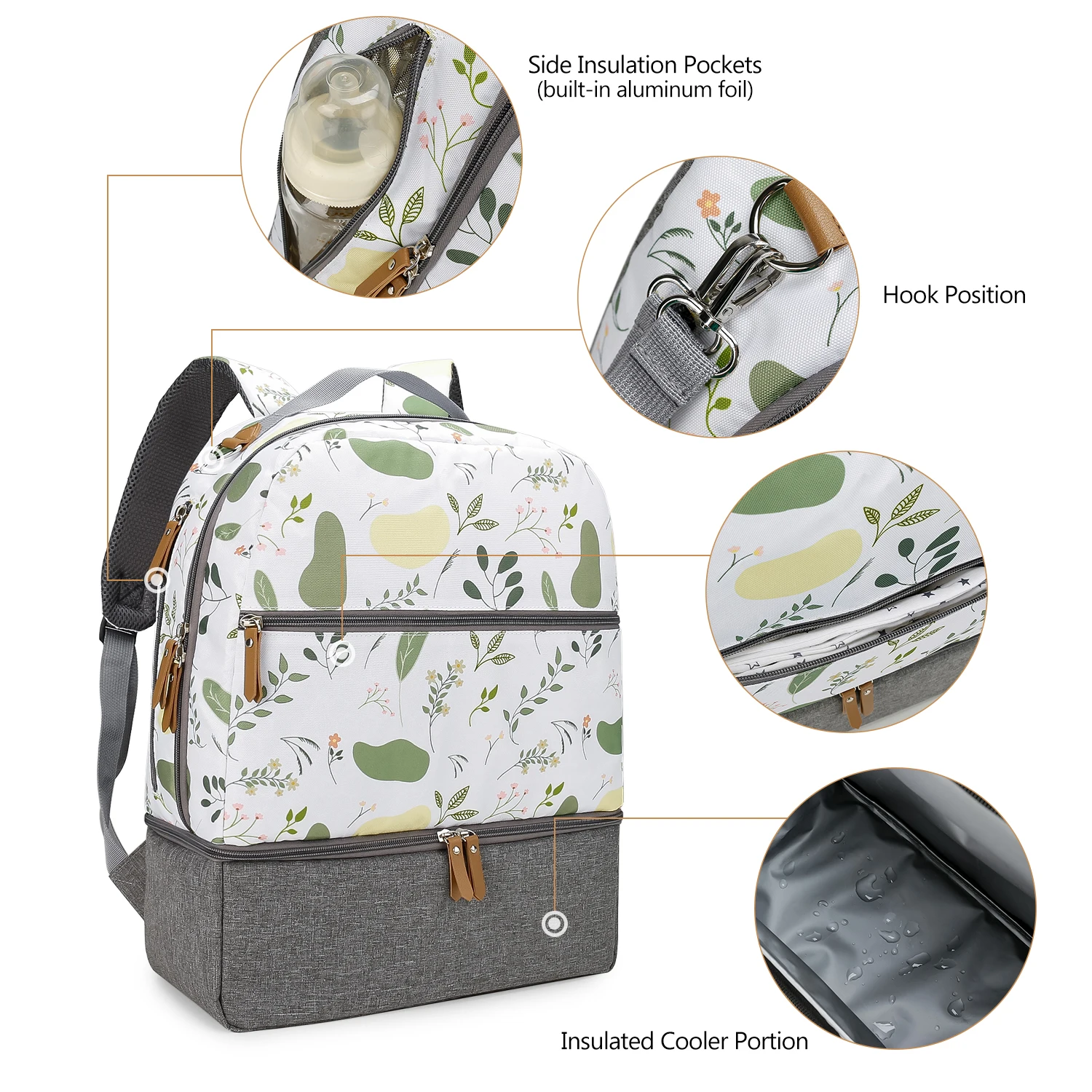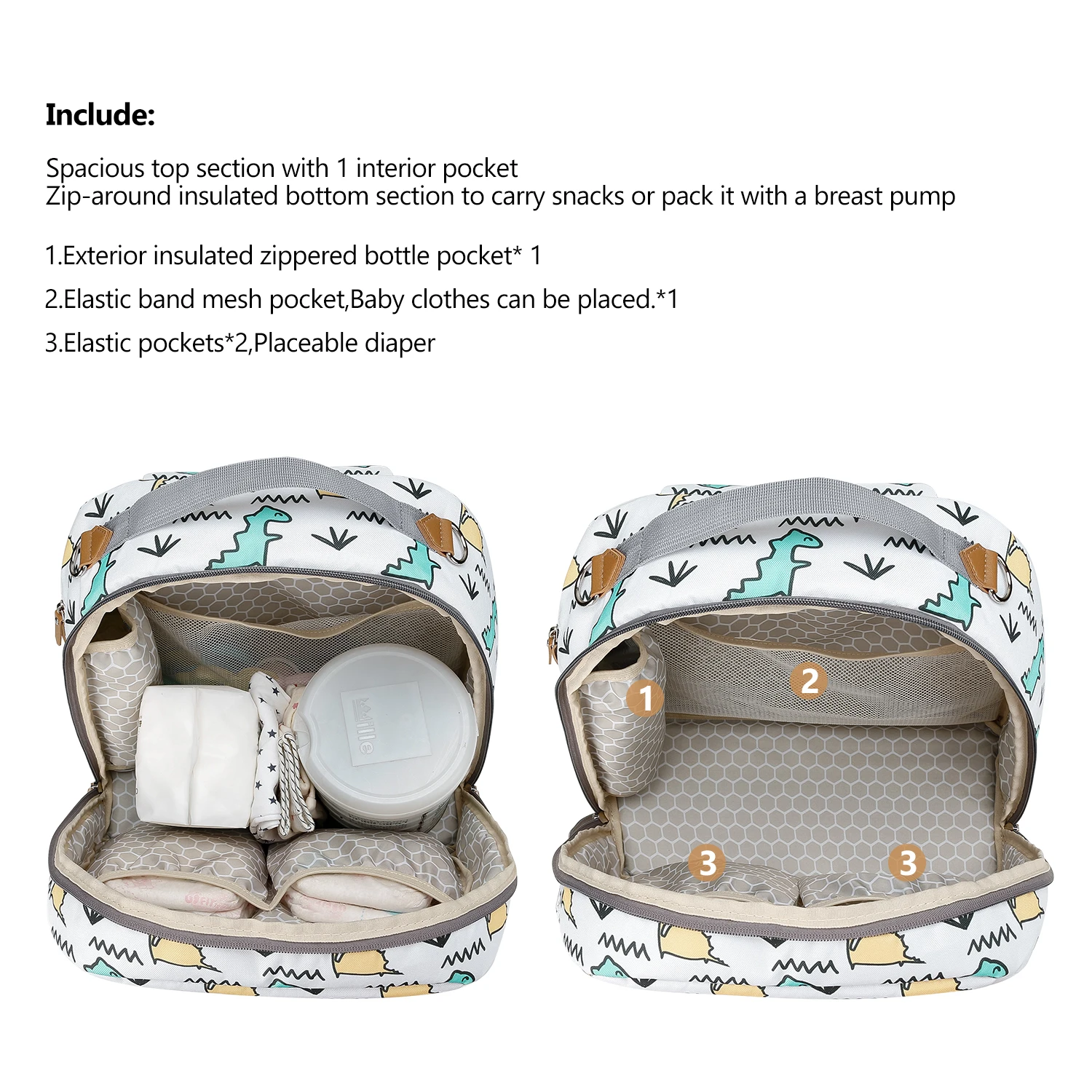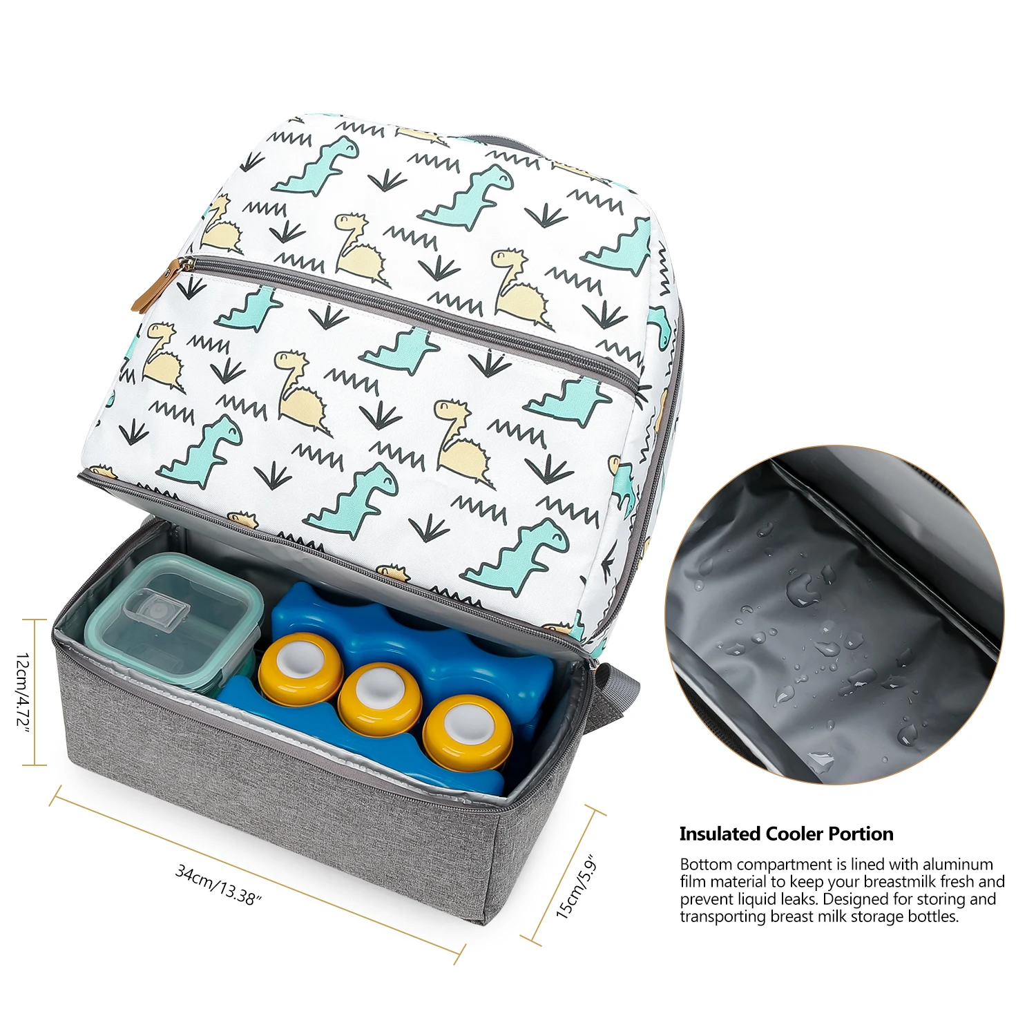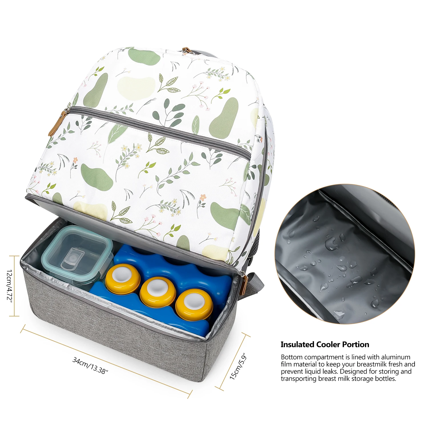 🍼DOUBLE LAYERS BOTTLE COOLER,LUNCH BACKPACK -Top layer is designed for some dry objects and fit into most breastpump carry. Bottom layer is storing and transporting up to 6 breast milk storage bottles from any brand with a large ice pack.