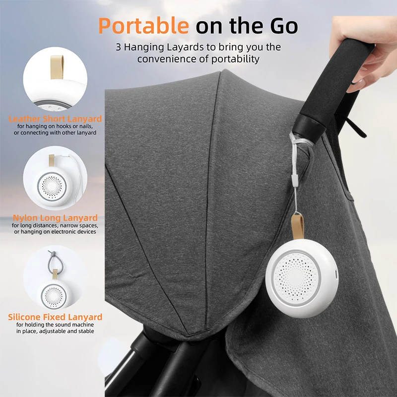 1,TRAVEL SOUND MACHINE FOR BABY: The White Noise Machine effectively masks environmental noise, creating a peaceful resting environment for your baby. This is crucial for supporting key brain development during sleep. As a high-quality noise machine and white noise sound machine, it ensures your baby gets the rest they need for healthy growth.