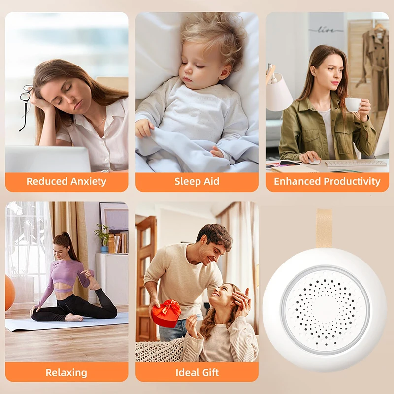 3,ENHANCE FOCUS AND RELAXATION:Science-backed white/brown/pink noise enhances focus during work/study, thunderstorm sounds for sleeping, while calming lullabies and piano melodies soothe stress and aid yoga/meditation. This versatile sound machine offers 24 built-in soundscapes for optimized.